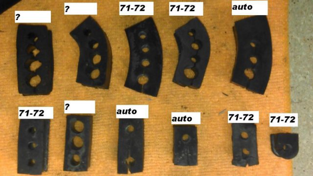 hello all I need help with the id of fuel line and brake line rubber insulators. The three insulators in question have a ? above them. I need to know what year or if they even go on a 240z, maybe a 73? They seem to be for larger fuel and return lines than on 71 and 72 240z. maybe a 260z or later since both the return and fuel line are the same size? 2nd top left is a tunnel insulator but not sure the year or model( 99.9% sure its a 260z since same size fuel and return lines)?, and the 1st top left is the free floating insulator under tunnel near rear end , not sure on the year or model(99.9% sure its a 260z since same size fuel and return lines ) 2nd bottom left with 3 holes looks like it is a 260z (99.9% sure its a 260z since same size fuel and return lines) anyone with a 260z willing to let me know if they are on your car? any help or input would be a great help
