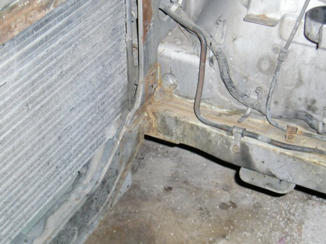 Hey guys. After a 5 year Hybridz hiatus, fate(and a hankering for some V8 power) has thrown me back into the Hybridz world. Anyhow, I bought a 75 280z about 2 weeks ago. It drove down the road pretty well, it definetly pulled to the right, but not so badly that it wandered around on the highway, the pull only required a very light hold on the wheel, but was sufficient to change lanes in a normal distance on the freeway by just letting go of the wheel at 70mph. I notice that there was definite impact on the passenger side front. The bumper is higher by a half inch or more on the passenger side. Not only that, but the swaybar bolt was bent to about 30* from straight (violently and with a very certain fulcrum). Also, the *right* side valamce panel is gone, and the passenger fender is bent upwards from the bottom. I have some photos of the damage below. The body has very very very little rust. It looks like the stock springs were cut, for about a 3" drop. The tires are all badly worn on the inside, indicating an excessive drop leaving camber uncompensated. ANYHOW, I have a full poly kit for the suspension. I have the tokico ILK suspension kit on the way(should be here monday!). I plan to put new rims and tires, big brakes, rear disk conversion, my built(by my own hands) 355, T5WC. I already have a brand new 280z steering rack and tie rod ends and wheel bearins all around. I am purchasing new ball joints, which will be here soon. Now to the question... I am going to show you guys the pictures that best emphasize the frame damage that is present on the vehicle. I want your opinions, and reccomendations. I am goiung to use your reccomendations and suggestions to guide me in my project timeline. If you feel that i should take the body to a body shop with a frame puller, let me know. If you think that with the new parts, it will be fine with an alignment, let me know. If you think I would be best off buying adjustable tc rods or adjustable front LCAs, let me know. I think that the below damage occured during an accident related to severe understeer. Causing the vehicle to leave the road/ contacting a 7-10" high object on the passenger side front tire. the object would have severely damaged the RF valance(which isw missing) Bent the sway bar bolt, and then would have gone on to bend the passenger side fender upwards. With this impact, the load would have shifted the frame rails towards the driver side, causing the passenger side rails to stretch slighty on one axis, and compress on another axis (separated by mere degrees). this behavior would cause the GAP that you can see on the driver side. Based upon this assumption, I would estimate the speed of the accident to be about 25 mph at the instance of contact (meaning the brakes were fully applied/ locked) So what do you guys think? Start over with a new chassis? Get it straightened? Get parts to adjust for it? Or just see if i can align the toe to compensate for the bend, and pray that the 2" closer to stock ride height will keep everything straight enough? What would you do? Thanks guys. Joe