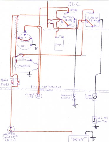 I did not look at this latest diagram close enough before saying it was a good plan. I was pressed for time and just assumed that you followed the example in my diagram. You changed it up and compromised the Starter Relay circuit's protection. You have not made the distinction between Maxi fuses and Mini fuses. Take another look at the way I have Pin 86 and also because it is jumped, Pin 30 protected by a Mini Fuse in the PDC. Same as the Ignition Relay. The Starter Relay is only being used as a means to control the Starter Solenoid with a Ground. The Maxi fuse is intended to protect the downstream cable coming from the Battery and the Starter Motor only. The way you have it configured the Starter Relay and associated wire can go up in flames before the Maxi Fuse blows. Take another look at my example diagram. Its a crude drawing, the Mini Fuses aren't labeled, but everythings shown to make the Starter circuit safe and reliable.