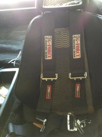 Installed 5 point because my lap belt will not fly at the track. and tried to figure out my new cooling problem thought i had it done with new rad and water pump but nope sbc gen1 cooling is straight forward and i am getting close to 200 with hood open and fans on .... thems the brakes