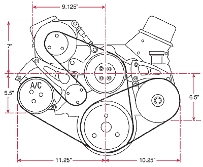 well guys after looking through the web for 2 days straight i finally found just 3 pictures of the bolt holes that I was looking for! I can't believe that the SBC been in production since 55 and I could only find 3 pix? Well here they are just in case someone needs this info later. The march diagram is kind of what I want to do, but the A/C is too low and will hit the passenger frame rail and the motor JTR motormount. So I need to mount the A/C higher up , almost to the same height as the alternator. the last pic is my pattern for the Vortech supercharger. wish me luck guys! -