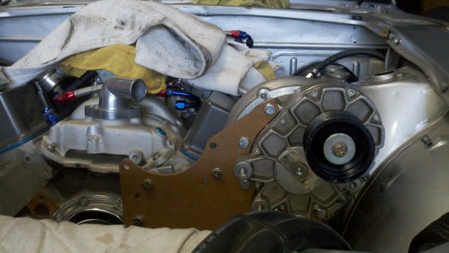 No kinding bjhines! This Vortech has fought me every step of the way NOT to be installed !!! I had to fabricate and or modify every bracket thus far. It's like building the car all over again. But hey thats hot rodding! Right? -