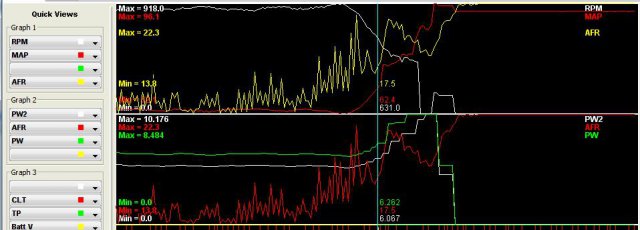 Ill look at doing that. Sure would be easier to just have to tune the VE until it runs smooth. The red line on the second graph is AFR not CLT, the labels on the left where CLT is red is for the 3rd graph not pictured. I'll be working on it tomorrow night so I'll try to deactivate those and get the car warmed up so I just have to tune the VE. I pulled the wbo2 out cause I feel like I may be running rich or lean and supposedly it's not great for it to see extremes. Also at some point if I get it running smooth ill hook it up and see if its like other innovatives and not working.... Also here's a question.. Is it ever possible to have the engine lean out with increased pulse width?