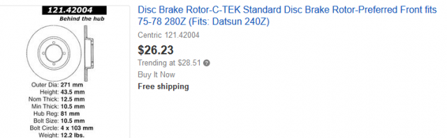 Hello everyone, I am searching for a simple answer and after 20 min on the FAQ I cant seem to find a clear answer to my question. I am running a 72 datsun 240z with standard brake rotors up front and calipers. My Rotors are warped bad and need to be replaced. Looking at several websites, blackdragonauto.com, motorsportauto.com. etc. There seems to be a differeance between the front rotors on a 240z and a 74 260z. What is the differance besides the 260 being slightly thicker? Are the hubs the same?? Can you bolt on a 260 rotor on a 240??? I do want to go ahead and bolt on the toyota calipers when I replace the rotors but I am not sure which ones to use. I am trying to keep this on the cheap, my car is just a daily driver and occasualy horseplay, thats about it. If anyone has any insight I would greatly appreciate it. thanks