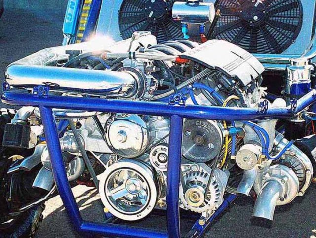 I feel really lucky that my son-in-law has such a LS engine business & great shop, but I gotta tell you a major portion of his LSX business is done in incredible 100 K Sandcars, street-rod, performance cars is about 20%. All these Sandcar guys that visit his shop are immediately drawn to my Miata and they all say; What in the He. . is that! Face it when your desire is to run an aluminum high HP V8 engine in a small japanese car, everybody thinks you're nuts, then they ask you if you'd build them one!! I've enjoyed thinking about the biggest most insane motor I could cram in my Miata (see pix) Bill's red Miata has 415 RWHP with a 377 stroker V8 in it, but one day after driving a friend's 1000 HP blown 512 CI 66 Vette, I took a picture and photo-shopped the Vette's blower onto Bill's Miata. I was curious what it would look like to somebody on the street. Sick eh? Have a great week-end!!! - Lee