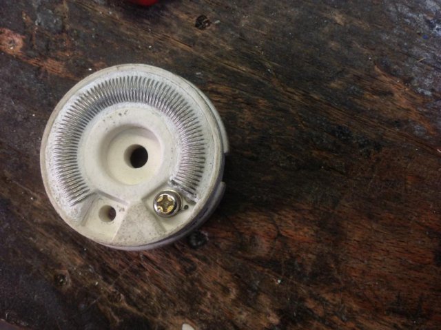 Well, I found the dimmer. Bad news, its fritz'ed too. Good news, I took it apart to find out why and its really obvious. The ends of the resistor coil are melted off the point where they go under the tiny bolts that connect them to the wiring harness. Good new is this is likely repairable. The entire switch comes apart easily. Take yours apart and find out if the problem is same. Maybe its just dirty contacts. To reconnect the ends of those coils, which are embedded in ceramic, will take a bit of creative digging and stuffing new wires under the existing coils, or maybe they can be soldered to. If you can't get yours working, then I'll fix mine and you're welcome to it.