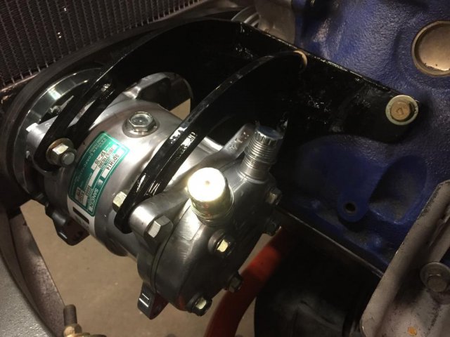 Vintage air sells a nice laser cut generic bracket pair that makes a fabricated bracket as easy as possible, but it still requires welding and cutting a plate to fit your block and position the pulley correctly. The L series brackets on the 280's and ZX's is anothe option but will still require considerable "manipulation" Here is the bracket I made for the 510. This the VA catalog page with the bracket. http://www.vintageair.com/2017%20Catalog/2017%20Vintage%20Air%20Catalog%2071.pdf