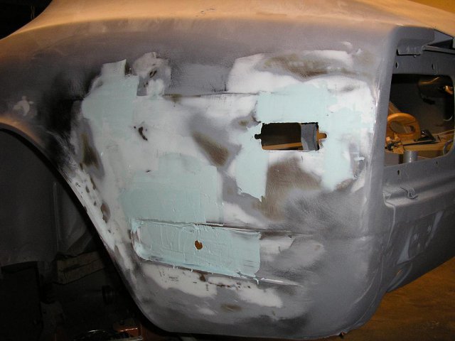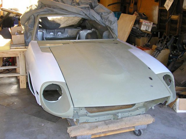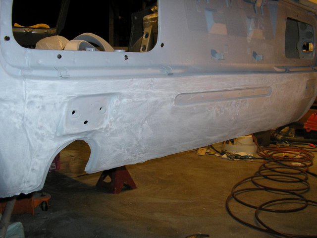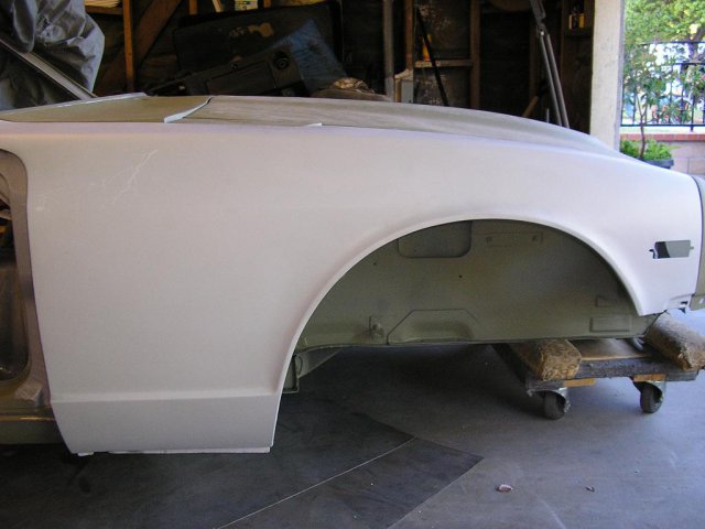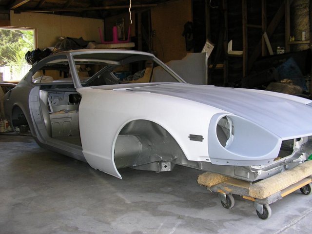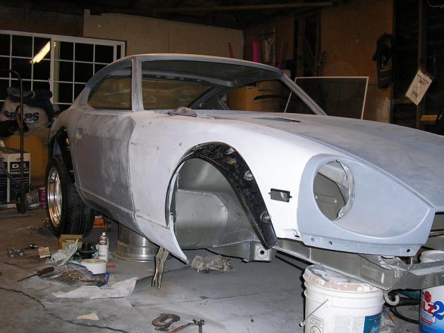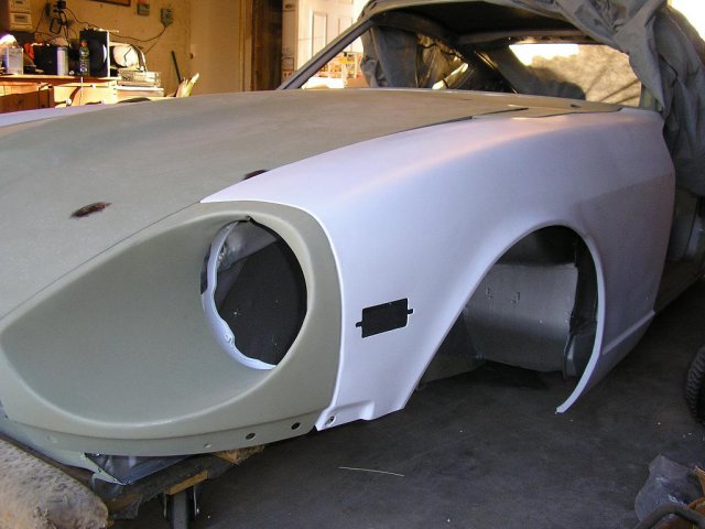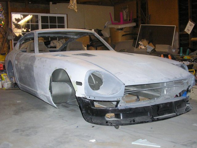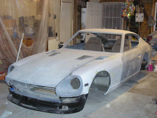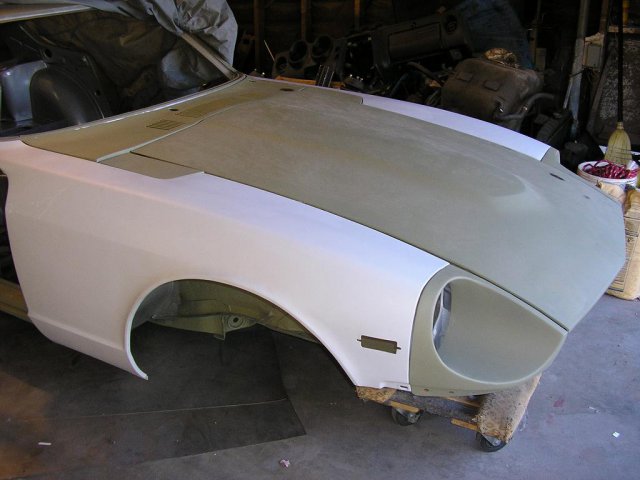 I did some modifications to the hood using 280z hood vents. I blocked the car and sprayed it with expoy primer again. -
