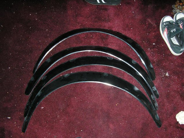 I installed fiberglas ZG flares, I also did the 5x114 to 5x4.75 upgrade by drilling new holes on the stub axles and using billet adapter to get the 5x4.75 bolt pattern. Using Enkei 92's 16x 8 with a 5x4.75 bold pattern i think they are -10 or -20 offset I forgot but they have a nice lip which is awesome. -