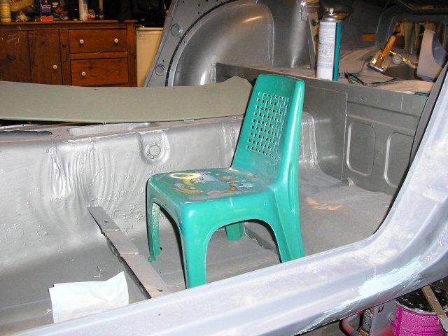 Patching up rust holes, and I used Rust Bullet on the interior n under the car to prevent rust from forming. -