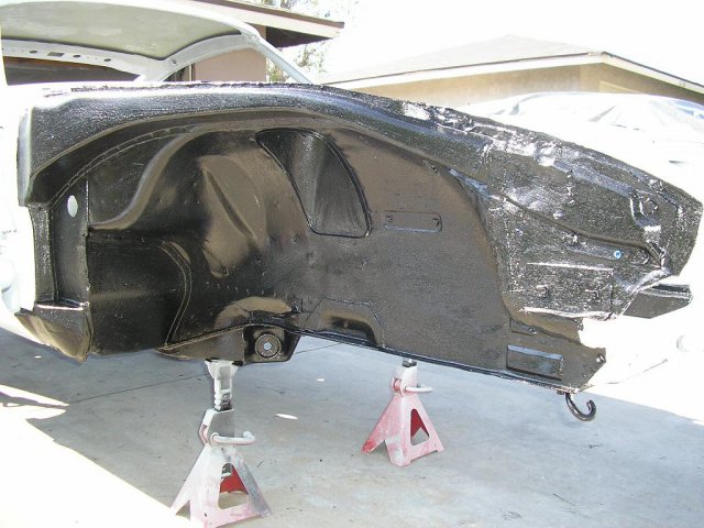 Car being painted I used PPG Arctic White Its a chevy color. The guy charged me $300 to paint it in my garage. I painted under the car with black undercoating to protect it from rust this includes the fenders and everything I think water is gonna be touching. -