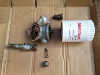 Thanks, I went back to jy with a rag this time to use on the threads, I managed to get it off, only skinning one knuckle.. Someone posted a link to the ebay item on another forum where I had also posted. I checked it out, and honestly would have gone that route, if I'd known what it was called. It is called an "oil filter stud" for 7.95 plus shipping. Less than the fuel cost to go get the part and the injury, pain cleaning the grease out of a skin wound.. lol I plan on using the cooler later, I need to get it hot tanked and some new oil lines made, I am saving my money for something I need more right now. Instead of looping it, spending more money...the little odds and ends add up quick, I'll just run it this way for now, and I will have learned something new. kenny