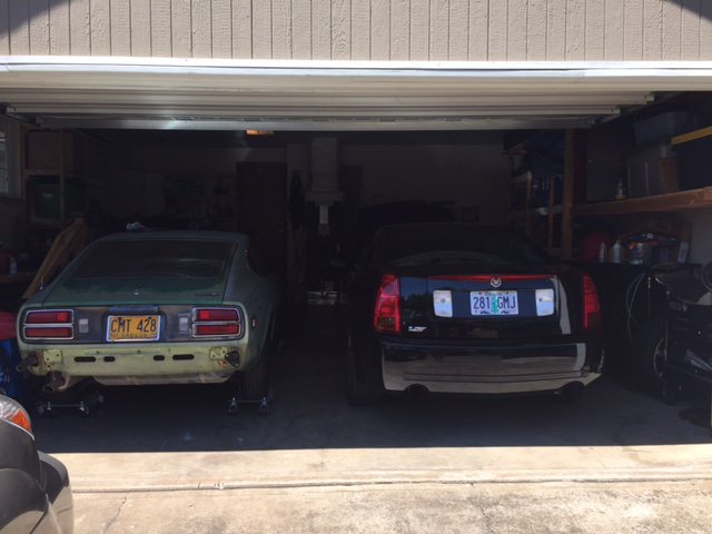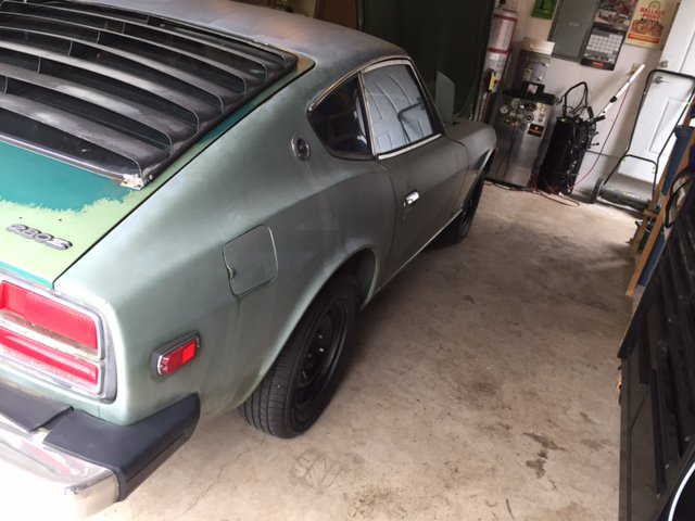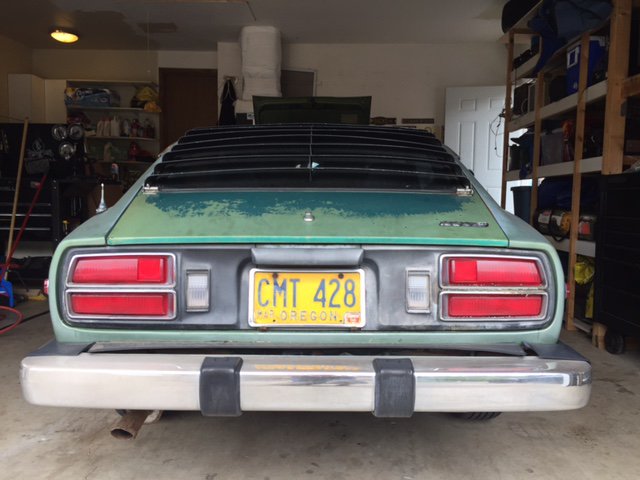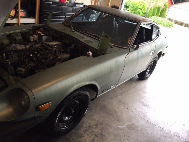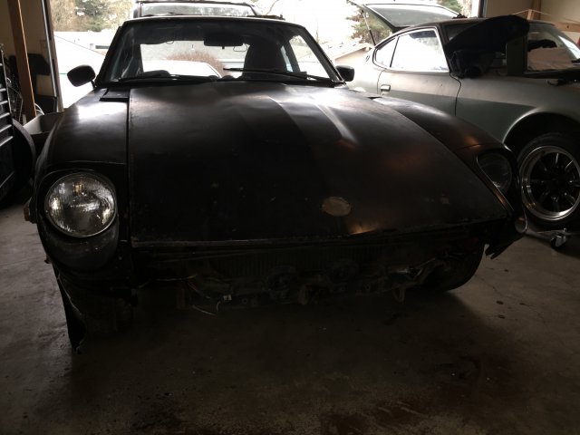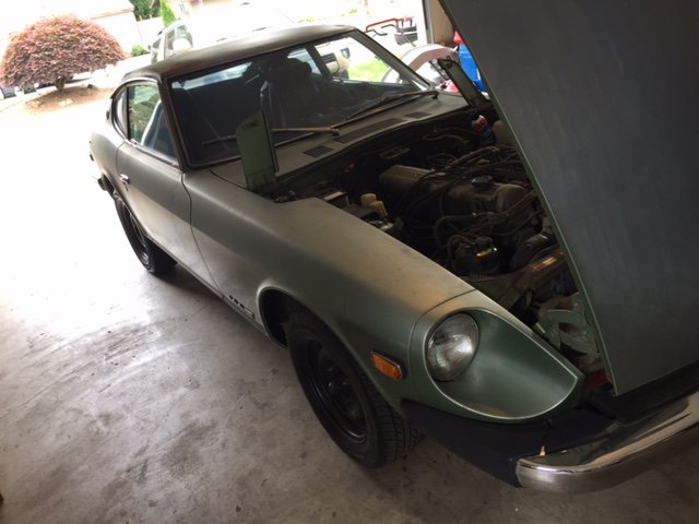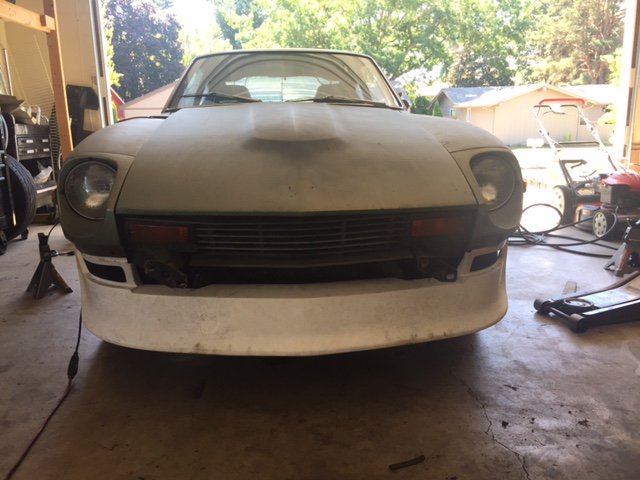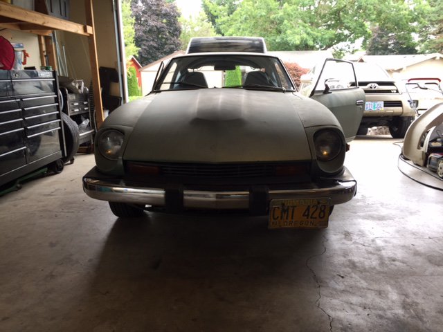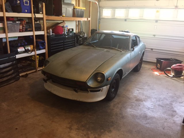 Well, it's been a long time coming, so I'll start with a little back story. When I was 16 in 2005 or so I bought my first Z, a very rust free and original 1972 240Z. Unfortunately at the time I didn't know much about cars. My dad and I were working on installing a stereo and got bit by the "while your at it bug" and decided to redo all the interior. The problem came when we ripped the dash out and didn't pay enough attention or label things. I attempted putting the dash back in a few times but always had connectors left over. So there my Z sat while I went to school, worked full time, chased girls, and got other projects and I had even gotten a few other Z's that I ended up parting out. I had always planned on figuring out the Z but never got around to it. Eventually in 2011 I was involved in a bad motorcycle accident that put me out of work for about a year, I had bills start to creep up on me so I sold my Z. Thankfully it went to a good home, it was shipped over to the U.K. To become a Win Percy replica car, but I had been regretting it ever since. My first Z when i sold Since selling the Z I did a lot of growing up, moved front Southern California to Oregon, got married, bought some other fun cars (2006 CTS-V and a 2011 WRX), a house, and got my wife pregnant in the end of 2016. At least several times a month I'd find my self looking on Craigslist for a Z, most up here in the PNW are in really rough shape due to all the moisture, and now these things are fetching top dollar, so all I was really doing was looking. In June of this year (2017) I found a Z in my town for $1,800 that looked to be in decent shape so I called the guy and left a message and never heard a response. A day or two later I was driving to work the same way I do every day and out of the corner of my eye I spotted what looked to be the Same Z! Later on in the day I stopped by and rang the doorbell and talked to the guy. He had only bought it about 9 months ago in hopes to restore but recently found his wife had cancer so just needed it gone. The Z looked pretty rust free for this climate, had some rust bubbles and a little rust I. The spare tire area and might need floors but that was about it. The owner said it ran on starting fluid but needed a fuel pump so I asked him to show me. After tossing in a battery and spraying some starting fluid the thing actually lit up, and didn't sound half bad either! So I told him I'd have to talk to my wife but was very interested. He said he had some one coming to pick it up tomorrow but he was on a first come first serve basis. So right away I called my 7 month pregnant wife asking if I could buy the Z, I'm sure most people out there could guess her reaction. I mentioned it was pretty rust free, would run with little effort, and the price was right. She mentioned we were about to have a baby and all the expenses that would come with it. We were arguing a little and I wasn't gaining any traction when I then lost service and the call was dropped. I called her back maybe 15 minutes later when I regained service and she said I could get the car, to this day I have no idea what changed her mind. The deal was I could buy the Z but needed to pay back the money to our savings account as fast as possible and couldn't use money from my paycheck and I couldn't put any money into the car until I payed it off. So I hauled ass to the bank and then to the owner of the Z, I was able to talk him down to $1600 and we made the deal. He then brought out some bill of sale paperwork, I mentioned his ad said he had a clean title. He told me the car does have a clean title but the owner before him had lost it. Great... I had agreed to buy this car, wanted this car, but it didn't have a title. I looked at the documentation, and it all look good, but what do I know. So I gave him the money and picked up the Z later that day. After towing the Z home, I found the clutch and brake hydraulics were shot, not a big deal but I wanted to get it up my sloped driveway and into the garage. So I threw the car in 1st, put a battery in it, and loaded the intake up with starting fluid. I started turning the key and to my amazement the car chugged it's way up the driveway and into my garage. I was finally able to give the car a good look over, the vehicle hasn't been registered since 1996! The fuel pump wasn't running with direct power applied, the clutch and brake hydraulics were shot as mentioned above, and really that was my starting point to getting this thing on the road. I "traded" some work for a fuel pump which I then installed and looped in a fuel filter before the pump since there was a little sediment after draining the fuel tank. As well as replaced the fuel filter at the fuel rail. After priming the pump the Z actually fired up but had some hesitation. After letting it run for a little, I gave it some gas and the heater hose burst open shooting coolant everywhere. So I replaced the heater hose with some universal 5/8 hose. I threw in some sea foam which helped the hesitation some, I think there is some garbage in the injectors. I also pulled the plugs and ran some sand paper on them and re gaped them and checked the timing. I then figured out why the driver door wouldn't lock, the lock actuator on the door latch was rusted frozen so while pulling the window frame to get the latch out, I broke the 2 bolts that go through the door to the window frame at the front. So it was time to pull out the drill and tap set. Thankfully I was able to loosen up the lock mechanism and it now works like a charm. The passenger door wouldn't open from the outside which I found was due to a broken door handle. I was able to find a used one on eBay for $15 shipped. The Z came with a fiberglass 240Z series 1 Air damn which I installed even though it fits horribly and has has the openings for the turn signals, I'd still say it looks better than the big ugly bumpers that the 280's came with. That gets you guys pretty much up to spee