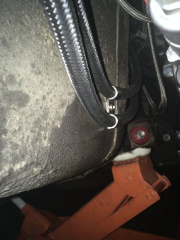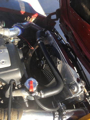 Hot: as in norm is 180-210 degrees F, and I'm creeping passed the 230s. No oil in the coolant, and vice versa. Lean: Im in the higher side of the wideband while on throttle the few times I've driven it. I definitely know I'm not running rich, so its more of an assumption. My overflow reservoir is tubed out from the swirl pot, kinda tucked between the rad hosing and IC piping. Its definitely air tight, its sealed no leaks from anywhere, thinking its just a timing thing now. Thanks man, definitely was a better move upgrading to this setup. My bad yes its Nylon braided. Remember its almost to the bottom part of the car but not on the bottom.