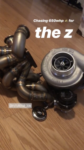Fellas sorry it's been so long. Almost a full year since i've posted. Since then i've just been tinkering with a little here and there things, small little gremlins and such. (Runs a little hot during the summer, might get a better fan setup) what is everyone else running for cooling? - still have yet to get the R8 coil packs installed, my wiring guy has been pretty busy with drift events. (Hence why i've kinda just been slower with this car lately) But with boost season coming around the corner i've got the itch again 😅😅. I did however get the car tuned, by a pretty reliable source. He told me my current wiring guy wired the 3.5 map sensor backwards. Which is why the car was running so crap. 🙆♂️ This wasn't a dyno, strictly a street tune. Tuner says it should be somewhere in the 330s hp. Anyways, since then the car has been totally drivable, no issues. looking at getting into bigger numbers now that i've gotten the gremlins sorted. Bought another daily E55 AMG, and that thing hauls... I made the mistake of buying something the Z can only keep up with until fourth gear sooo...🤦♂️ Looking at going for 550rwhp on pump. -Heres the set-up im Looking at going bosch1000cc injectors, GT3528r twin scroll, FF exhaust manifold, bigger fuel pump(still looking into), and external waste gate...Thoughts?