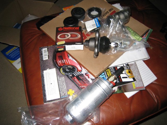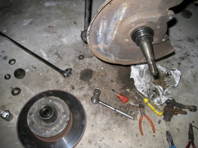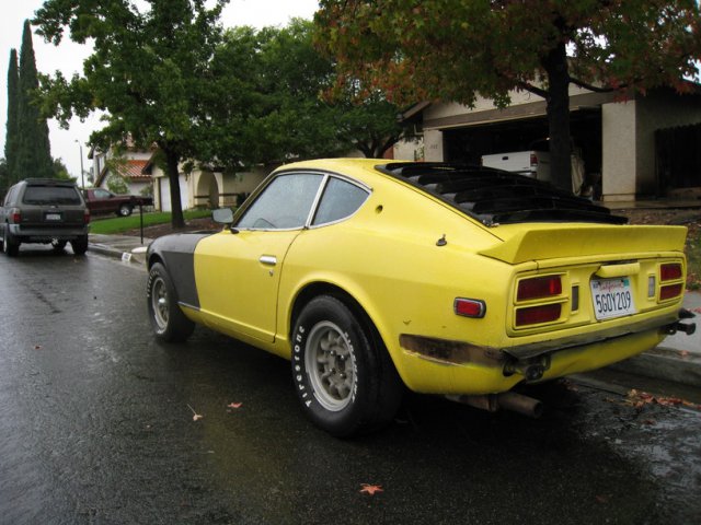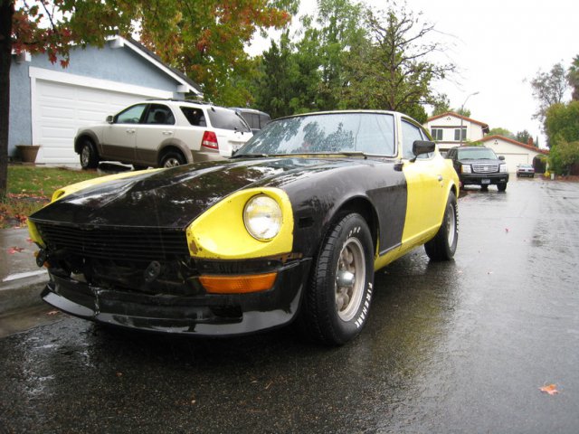 So i fell in love with Z cars when i first saw the silver one with white stripes on the cover of modified magazine about a year ago. ever since then iv been researching what it would take to build an RB powered z car. So after a year of researching every night(you can never do to much homework)i went out and bought an early 260z. Which is the 240 chassis but with slightly different components than the 240.It was $2,500 for the 260z and since this is my first complete rebuild i decided to buy another rolling 280z parts car $300(for when i skrew something up or just plain need a part). I drove it around for a week then had to order a fuel pump...another week went by and had to replace a starter, then the battery, then had to do the starter relay, then had total light system failure! it came down to old wiring needing to be changed and needing a new combo switch(still haven't found a 260 combo switch..any help?). Then finally 2 months later complete engine failure with a clutch slave bearing rattle. So it just seemed like time to start the rebuild and swap. Now im starting with suspension and will be doing body work while i wait for parts in the mail. Jacked up the front end: Instantly felt MAJOR play from the ball joint and tie rod end, for each had no bushings what so ever. In fact all the rubber (that was still left) was biodegrading at the touch. now since im in here its a good time to bring this stuff back to life and give it some chassis black! I used a torch to get the bushings out of the control arms. I found it was best to just point the torch at one spot on the bushing for about a min. Then take pliers to pull the sleeve and a wooden dowel to push the burnt bushing out. now the first one i did i lit it up and let it burn. I Then found it was better to basically char it to powder then push it out while the metal was still very hot so there isnt any goo left inside. it still needs a little bit of sand paper clean up but not as mush as letting it burn out slowly and just turn to goo. fyi use a respirator. here is a pic of the control arms right after being wire brushed. id like you guys to see what it looks like befor the rust converter because im amazed with this stuff. I put some eastwood rust converter on them along with the brush guard and a few other pieces. pic on that tomorrow. THE SHOPPING LIST: Complete poly bushing set from black dragon (the summit one was wrong for the 260z). 2 oem strut rod bushings from moog(dont do rear rod bushings in poly!!!) Ball joints from Moog wheel bearing grease+white lithium cotter pins KYB shocks front and rear Strut time. loosen the main strut nut before removing the 3 nuts on the strut tower. and hold the spring on both sides with something. I did the first one with just one clamp holding the spring not thinking that it would just bend it into a c shape..that was a scary moment. !springs=bombs be careful! From there the gland nut gets removed and new cartridge installed, very easy to do. Cleaned out the top strut bearing and re-lubed with wheel bearing grease. will be assembled shortly once i rent a spring compressor from napa in doing this i found out why my car dives right under hard braking. the left brake line is clogged, with rust i imagine. it also has rips in the rubber so a complete braking over haul is on its way. The 240sx calipers, and 280zx 15/16 master, and 280z booster from my parts car, are all on my bench The polys just arrived im starting with the steering coupler. now im sure many people can tell you that its a F#<%in B!#<^ to take apart and even more to get the 2 dang bolts back in! The 2 bolts that hold the shaft to the steering coupling are blocked by the u-joint connection so its a lot of wiggling and not so kind persuasion to get them in or out. My fix: flip the dang things and put lower profile locking nuts on them. the bolts are to long even with the lower profile nut so it just took 2 seconds of grinding and now i can easily take it apart in the future. i used the old nut as my guide and it keeps the threads nice in case of drunkenness. i ran out of time but ill get back to the polys tomorrow As for the hood i had started work on fixing the rust issues and dents i plan on repainting the car black so i stripped the whole hood to metal. Always clean between steps...Steps taken: 1)guide coat 2) body hammers 3,4,5)All metal filler 6)bondo to feather the edges..thats the right way to use it people! 7) rust converter..even with bare "rust free" metal there is flash rust that you cannot see so do the steps to get a lasting paint job. 8)sand smooth and sprayed a 2 part epoxy black primer now i had trouble getting the cheep spray gun to spray even. so there is such thing as going too cheep on a primer gun. ill have to sand out my runs and respray. im very happy with how tough the primer turned out though. ill get back to it soon when im looking for stuff to do. for now though i have polys Now while im changing brake lines i might as well do fuel lines. im going with a 3/8 hard line and -6AN braided line with a fuel cell and bosch 044 set up. Now i get a lot of questions on why not a surge tank or using the original tank with a baffle and sump mod. Here is my answer: To go that rout on a car this old is risky without first cleaning and sealing the tank. which professionally done is $250-$300 and trust me you dont want to do it yourself. Then if you do a sump kit it is around $45 plus a bit of luck on not having any pin holes after you weld the sucker up. or if you go the surge tank its the $250 plus 2 fuel pumps $300 and the tank $45. i bought my Aluminum 15 gal baffled fuel cell with a sump and sender for $212 plus quick filler pvc hose and lic plate filler $120 . Im not trying to bash the other 2 methods, im just on a budget and it saved me $150 to do the fuel cell plus its SCCA legal now. ON ITS WAY: Diff seals-moog bosch pump-72.9 psi Fuel filters-earls 40micron 75psi Fuel line 3/8 summit 20ftbrake line 3/8 summit 20ftbra