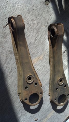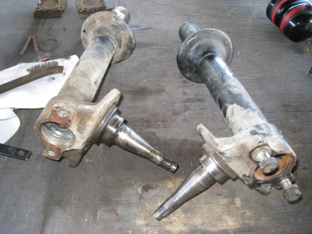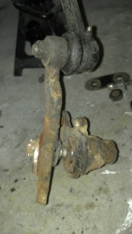 Another box of goodies After i got off work i spent my evening going through my front suspension components. I started checking for damage and cleaning them up for paint. This is after the converter. It hardens into a blackish purple coating that can be sanded smooth then sprayed over. The brush guard needs another coat since it had thicker rust. It should look good soon though. Going through the suspension pieces i noticed that one of the strut-rods was bent at the top(middle). So grabbed one off my 280 parts car to switch it out. Getting the junked 280z is like having a salvage yard out back, i love it! Invested in some electric tools today that made cleaning metal child's play! Before: After: It started to get to late to run the tools so i called it a night. I have the next couple of days off so look out for more post soon.