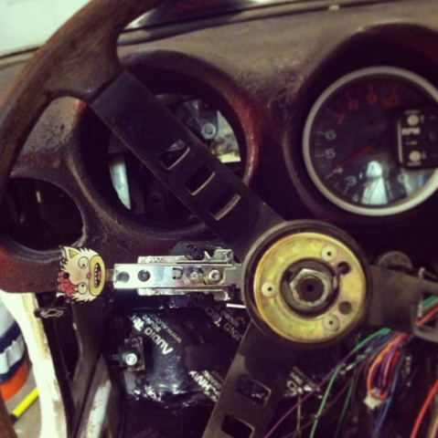 I'm running '93 RX7 turbo front calipers with Evo 8 rear rotors up front utilizing a steel bracket. In the back I went with the Silvermine Motors Stage 4 kit so I could retain a parking brake but still have a balanced brake set up. In addition, I've got a Wilwood 1" master and a Wilwood proportioning valve, which I have mounted in the ash tray pocket so I can adjust it in the car. I haven't driven my car yet so I can't speak to how well the brakes actually work but I have pretty high hopes. The front brakes are 4 piston aluminum calipers, and while they used to say MAZDA on them, the guy I bought the kit from ground down all the letters except Z, so now they just say Z. I haven't actually seen anyone else running this set up, but I have heard it mentioned before but not in much detail. The brackets are super simple, just a straight piece of steel that gets bolted to the stock brake ears, with two holes that are farther apart and tapped so you can bolt in the RX7 caliper. I did have to do a lot of filing and messing around with spacing to get them to center properly but they're all good now. -