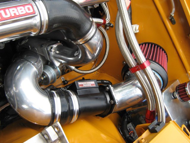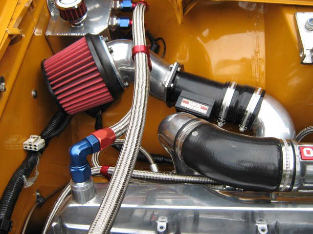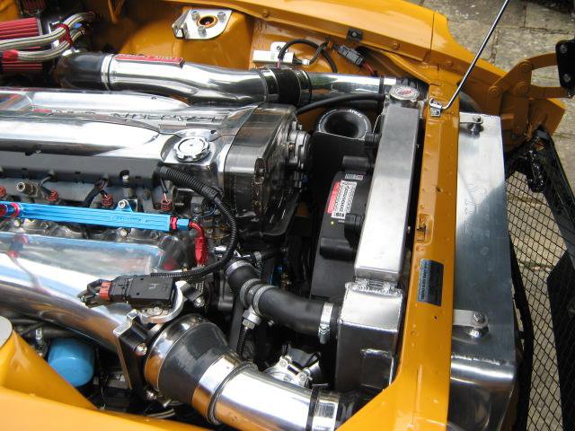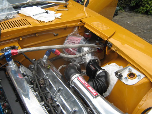 Ok the Apexi air filters have turned up, after cutting up and rewelding the alloy bends i got them to fit inside the Z engine bay, had a oil catch tank made to my sizes and thats now fitted,the original centre consol now back inside the car after some mods to move it forward so i can get 1-2-5 gears. Bought a Skyline R33 GTR tacho and will make it fit into original Z tacho pod, the Auto sparky is 99.9% finished he just has to tidy a few bits he has made a new wiring loom/fuse board that runs the fuel pumps/electric power steering and the Kenlowe electric fan and sits behind the drivers seat and it will be covered by the original plastic covers Should be up and running this time next month as working away in Ireland then off on my hols.