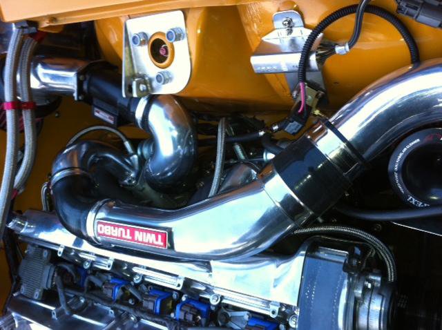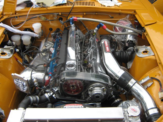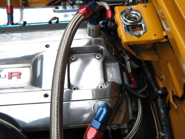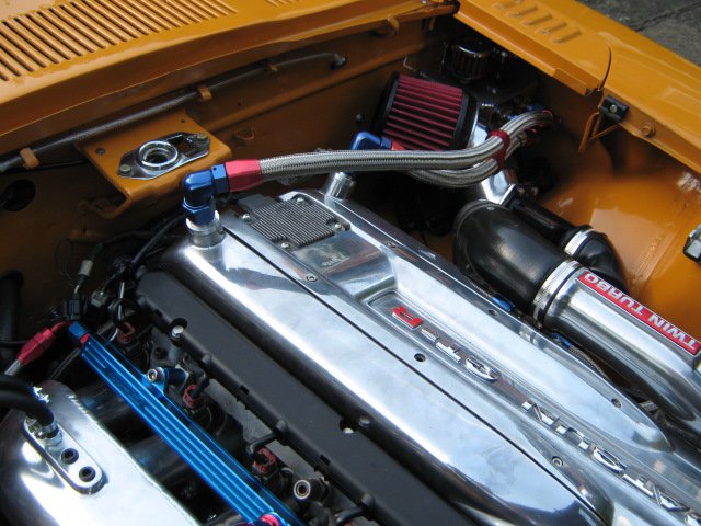 RB26 engine rebuilt with new forged pistons & rods, lots of head work done with a set of Tomei cams, all bottom end has been balanced new GT 2860-5 turbos, Big inlet manifold with 100mm RIPS throttle body, Nismo 600cc injectors on a Greedy fuel rail, x2 red top lifter pumps into surge tank x2 Bosch 044 main pumps to fuel rail, Stainless manifolds and HKS down pipes both heat coated.