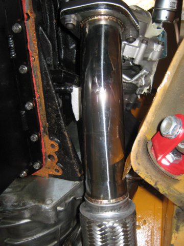 Here you go pictures of my XS downpipe thats been modified by the exhaust shop to fit my 240z, the original one hangs down do low and we had problems loading the car onto the car trailer to take it to have the stainless exhaust made. We also have a RB26 240z in the Manchester area he is also using a modified XS downpipe for the last 5 years with NO problems. So with a FREE XS downpipe it only stands me at £80.00 to have it modified.