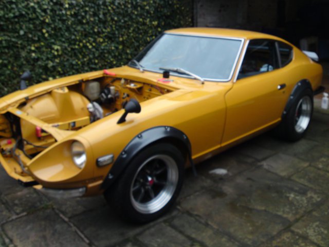 Not been here for sometime my RB26 engine is now installed into my 1970 240z i bought the car the Arizona USA 5 years ago and had it shipped back to the UK the car has been converted to RHD and have also cleaned up the engine bay by removing the battery tray. The car has been repainted in its original colour 920 gold a set of wilwood brakes and Watanabe Wheels and ZG overfenders finish it off, the rear boot wheel well has been removed and a alloy fuel tank sits under the floor. Hope you enjoy the pictures.