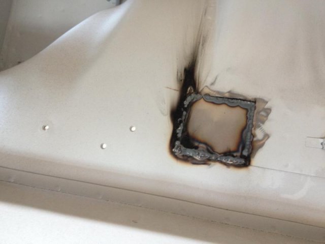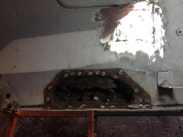 That's too funny...I have a nearly identical hole right where my battery tray used to be. I'm just finishing up my floor pans, and that's next on my list...