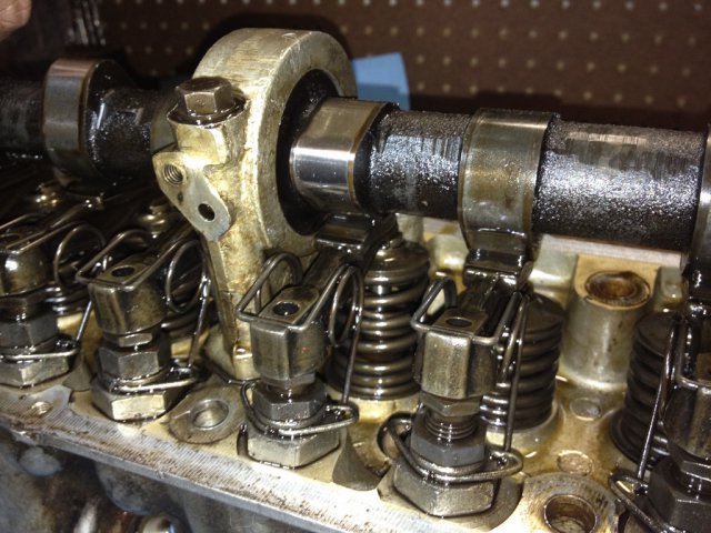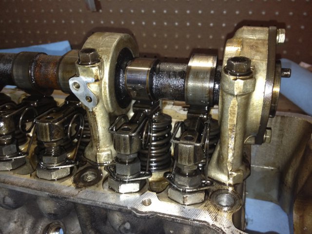 I'm working on tearing down the L24 out of my 71 240, and was hoping some of the more experienced folks (which is just about everyone here) might be able to give me their opinions. In looking at the head, it's pretty clear the rear 3 cylinders are running way too hot. The rear carb was definitely not flowing enough fuel, but I didn't think it was quite this bad. I'm planning to replace the valves/springs/seals, but I'm not sure of the condition of the cam. There's no obvious damage to the toes of each lobe, and I'm assuming that the polished centers with darker bands on the sides is simply from the pads on the rockers keeping the lobes polished on the inside. There's no grooving/scrape marks, and no other damage I can see, however on the cam itself there are pretty big scrapes that look like they were just from the original casting, but I'm not sure if that's supposed to be the case, or if at some point something was loose in the head and scratched the surfaces. On the block side of things, I'm pretty sure a full replacement set of pistons is in order, along with new rings, but I don't see any damage to the bores as of yet. I need to pull the pistons out before I can see everything, but other than the (massive?) carbon buildup/scoring on the tops of the pistons, nothing's jumping out at me saying "omg, the block needs replacing". Thanks for any help in advance, and please be kind..it's my first time