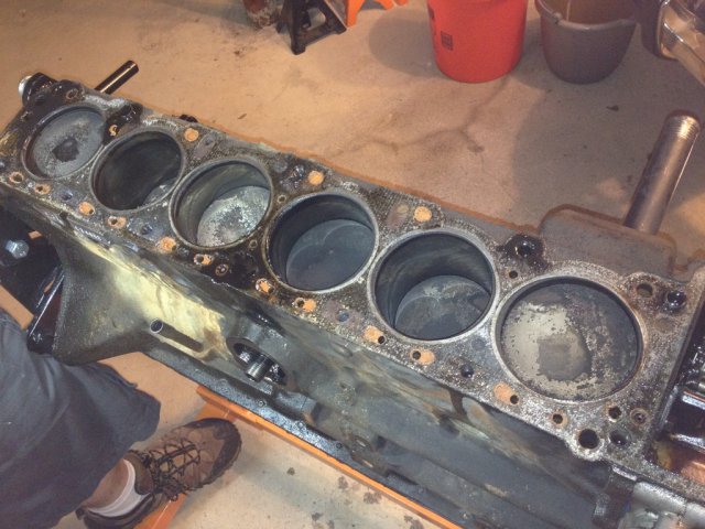 Wow...lots of good feedback, thanks much! I've been keeping everything really organized in the tear down. Everything is separately bagged and tagged as to where it came from, the pistons were all pulled out individually, and I kept the bolts and bearings all in the correct places as I pulled them out. In terms of markings on the pistons, what should I be looking for? I assume they'd be on the top, but I'm not sure what I'd look for vs. a stock piston. I've been running premium only in it since I got it, but no idea what was done before that. The PO wasn't terribly good to it...basically kept it running (barely), but didn't do things like check the timing, fix the wiring issues, or much else. The oil that came out of it when I first got it was the nastiest stuff I've ever dealt with when changing engine oil, and the stuff after about a thousand miles or so wasn't any where near as bad...so no idea how often it was changed or even looked at. In the beginning I didn't hear any detonation, but it started to knock near the end, so I didn't drive it much at that point. I tried to richen out the mix on the rear carb as much as I could, but it wasn't flowing as well. I definitely need a rebuild there, and I'm planning to go with Ztherapy. According to the head stamping, it's an E31, but the block is a P30. If I'm reading right (http://datsunzgarage.com/engine/) it's not a stock pairing. The block (at least) isn't original, since the serial number doesn't match the VIN of the car. Thanks again for all the guidance, I really appreciate it! I'm hoping to get the rest of the block and head torn down this weekend, and (depending on this freak snowstorm we're supposed to get) going to take the head, block, and a few other bits to the local carwash to pressure wash them off before looking around for a machine shop.