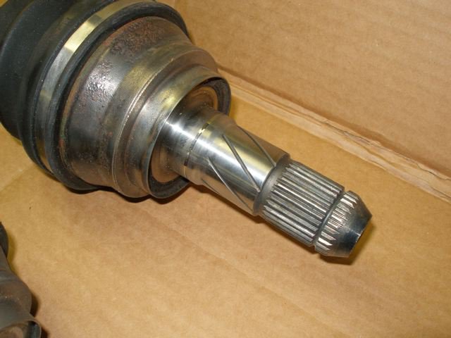Both types of halfshafts I have in the photos have 29 splines. But I do have a favor to ask of you since you have a VLSD and halfshafts. My longer halfshaft, the right side, had a much shallower groove for the spring clip than the shorter left side (I cut it deeper in an attempt to get it to fit, hope I didn't screw it up). Is yours the same and is the spring clip on the longer shaft thinner than the shorter shaft? The spline ends are different on my longer and shorter halfshafts, one is blunt and the other tapered. Are yours the same? I asked this question on another thread as well, probably not supposed to but I wasn't sure where to get the best responses, http://forums.hybridz.org/showthread.php?p=1002630#post1002630 and Z240 confirmed that mine were the right halfshafts and J. Soileau RB26zcar said that he has had the same diff in his car for awhile. If you can post some close up photos that would be great, especially of the spring clips and grooves and the ends of the halfshaft spline.