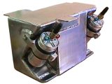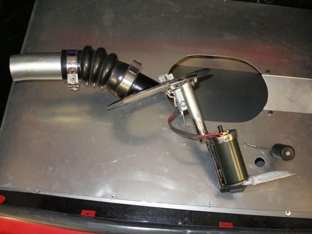 The fuel rail needs to be fed from both ends to insure an adequate supply of fuel under acceleration. The hole in the middle top is the line that runs to the fuel regulator and then the fuel goes into the return line back to the fuel tank. Fuel injected cars need a surge tank to insure an uninterrupted source of fuel to the injectors. Stock fuel injected cars have a small tank within the main tank, but if you're running the power you want you'll need a separate surge tank. I installed the pumps inside both tanks to cool them and keep them quiet, but it's a lot easier to mount them outside of the tank. Make sure that they get adequate ventilation, some pumps overheat easily.