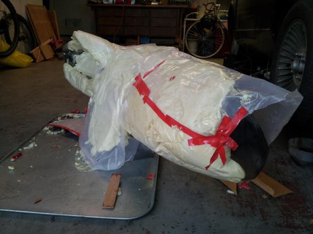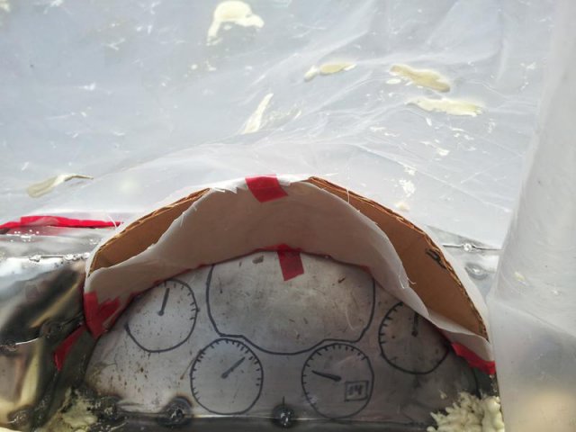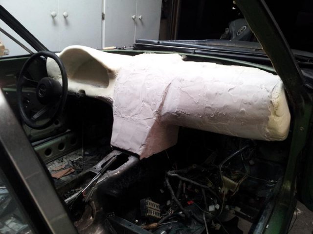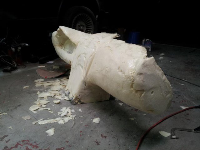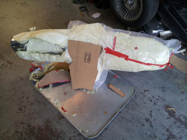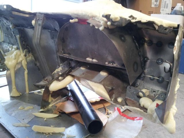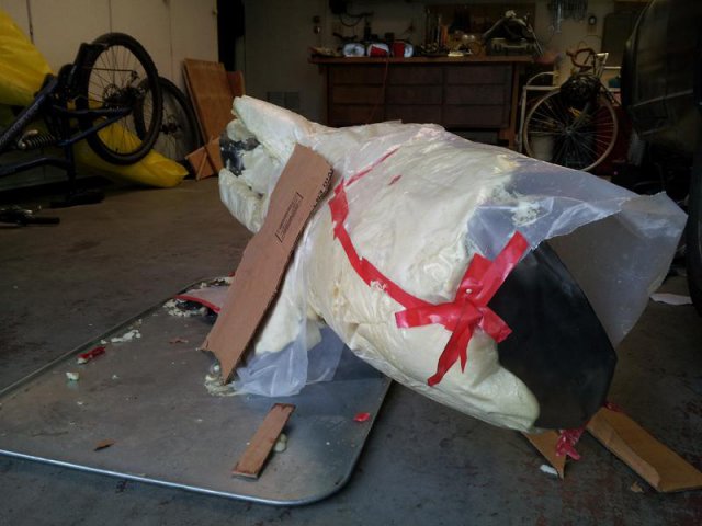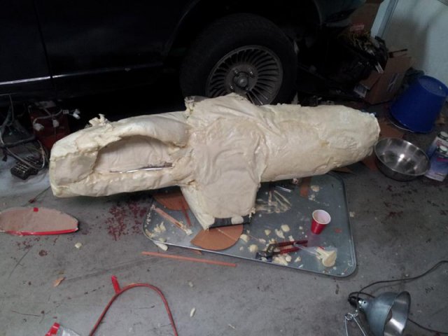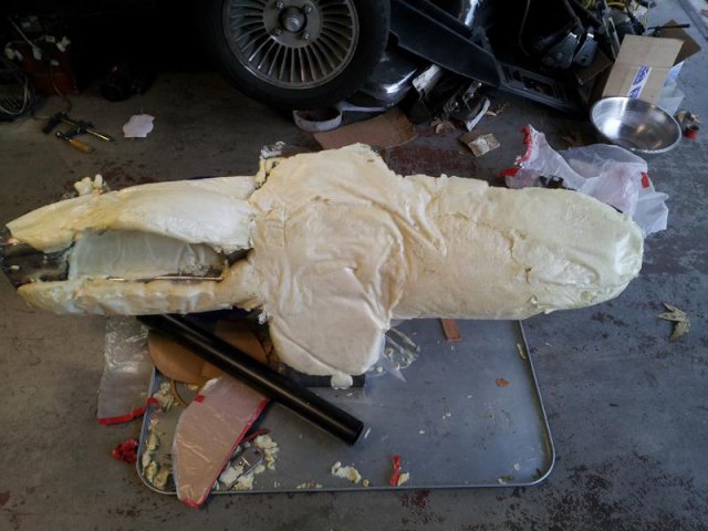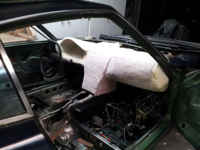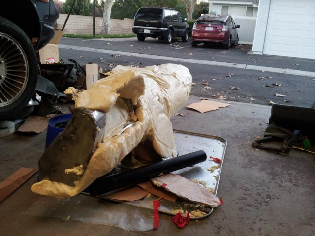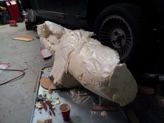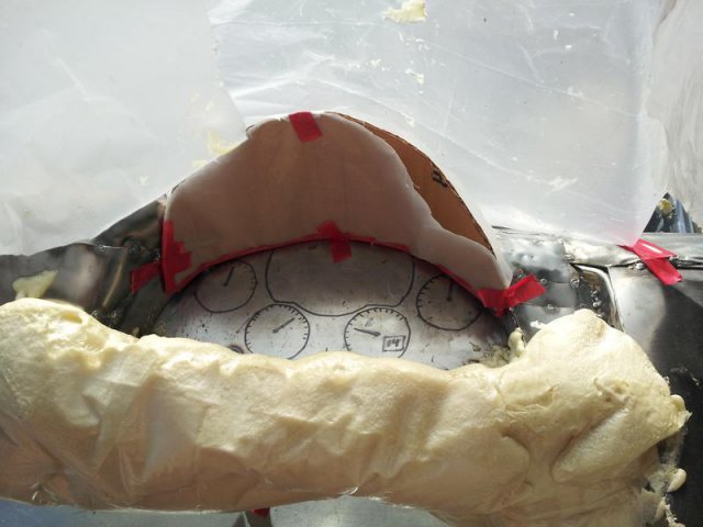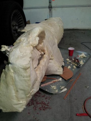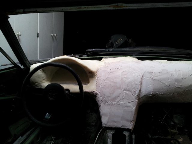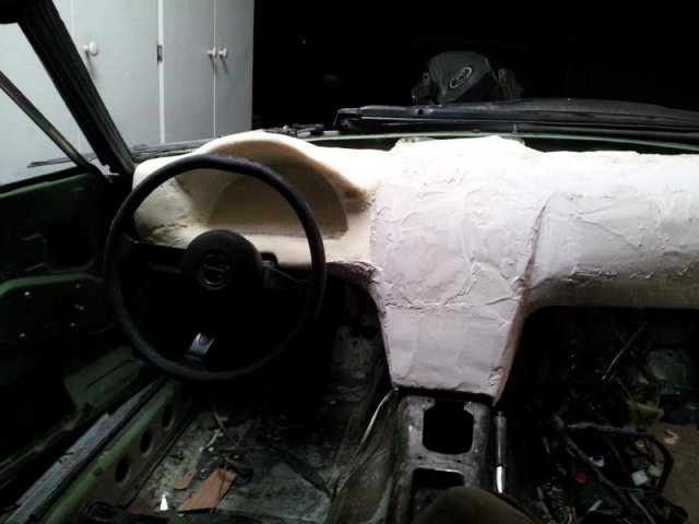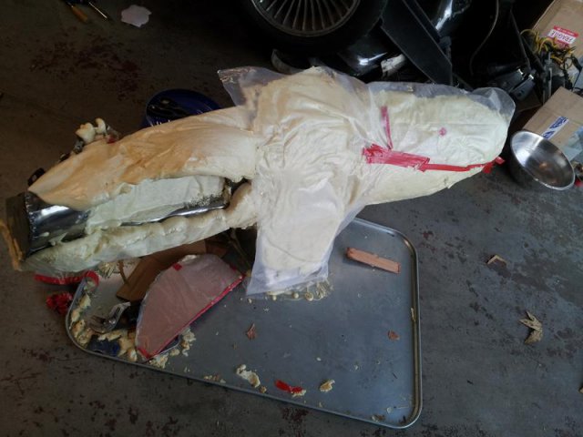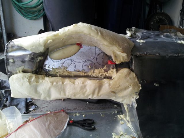Hi all! Here are some updates on the dash. I apologize for the delay. I went ahead and have been doing work on the dash without doing updates. Medical school just started again today, so I am stretched for time like crazy now. With my BMW project done and my buddy back from break, we'll try to work hard on it over the weekends. Just not going to happen that much during the week as I need to study. Here's where we are now: I finished foaming the entire thing I shaved and sanded the foam to shape Jon (fellow student) and I started applying bondo and finishing the last shapes We poured a little extra foam over the instrument hood because it was just gonna be too much bondo. And the pictures and videos from what you saw last until tonight: Here is how I shaped the instrument shroud/hood. It works pretty well, but the foam will leak out, so you have to seal it well with electrical tape and hold it in place if it starts to push out. Starting to pour the center part of the dash. This was actually the most fun in my opinion because it transformed the dash so much...