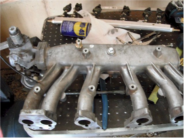 Progress! Relocated pcv valve on new intake, removed old intake from car. Would have old exhaust off except for stud under water neck - feels like it will break. I will let it soak tonight and tomorrow and break it on Monday. Got some pics, too. Question: Can I delete the little coolant-fed hot plate under the AAC? Is the AAC powered open/close, or is it bimetal spring - end switch setup? My plan is too plumb it to the J-pipe like I've seen on someone else's build, but I'm not sure of the reason. Idle stability? Also, I've seen some turbo builds w/ non egr manifolds where the cold start injector has been deleted. Is this a good idea? I would like to be able to drive the car late spring to early fall, so there may be some cold morning starts. Thanks in advance.