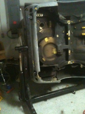 Once assebled and the car was put on the rotisserie I put in saftey pins for the pivot point at 90 deg intervals, and on the uprights when the car was at spinning height.