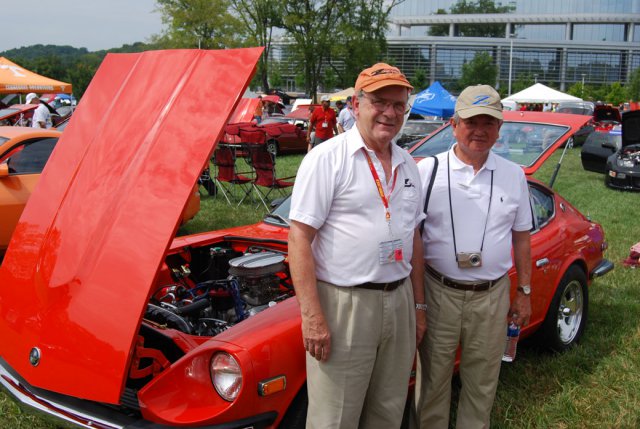 Hello Everyone: Mr. Matsuo, the Designer of the original Z Car visited California this past summer. He spent some time with MotoMan doing a video with Randy Rodriguez who's concept skecthes were the basis for the design of the new 370Z. You can see the resulting video at: You can also find at: Apple iTunes http://www.CraveOnline.com Boxee DivX TV Roku Samsung HD TiVo Verizon FiOS OnDemand Vizio VIA I think everyone will enjoy this... IF you were lucky enough to be at the Z Car Convention this year, and to have meet Mr. Matsuo - you now know why there is enough room in the engine bay for a V8. Turns out that Mr. Matsuo is perhaps the Charter Member of Hybrid Z - he wanted to assure that there was room between the shock towers for a Nissan V8... and had quite a few disagreements with the engineering and production people about that... in the end Mr. Matsuo had his way - there was room for a V8... Pictured below is Rick Rawe, Mr. Matsuo and Rick's Ford V8 powered 240Z. FWIW, Carl B.
