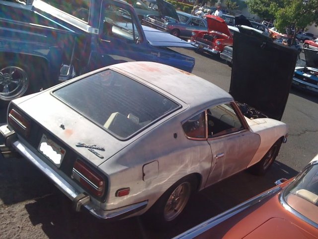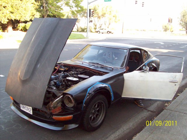 Hello All, I been fascinating Datsun cars for years, I've dreamt of getting one and putting a V8 in it. I was finally able to get a decent one for $900 all beat up but it ran, it has a clean title. Can't complain for $900 with another $900 of bonus parts included (280zx motor, struts, louvers, etc). Sold most of the stuff on Craiglist, basically got the Z free. After 6 month of daily driving, some dude hit me at pick n pull with his 2000 Dodge Ram 2500, he wasnt checking his surrounding while I was backing out, causing the clutch to explode after few miles of the impact? I guessing the jolt of the impact shock the drive line system some how. Anyways, I couldn't afford to get the tranny or clutch replaced because the local shop wasn't familiar with Japanese cars. I was able to get ahold of the 1994 Camaro z28 with a LT-1 T56 for a really decent deal, and insurance mostly paid for the Camaro. So I decided to swap it in since I am more familiar with American motors, and parts can be found locally. So I sold the old motor and tranny, cleaned out the engine bay, put the new power horse in.. Now I am working on all the little things. Have some questions for you guys, maybe ya'll could help me out? I have done alot of research out there, talking to people locally, and googling stuff out. Sorry if some of my question is too common, or already had been said on here. I already checked the search box, couldn't find my answers. Since I am building my car with whatever I could get cheap and locally, I tried to MacGyver everything together So I could drive this thing again, it been 5 month of it not driving. I would use most of the old parts, but they are so worn out, leaky, greasy... etc.. I also repaired alot of rust issues on this car, boy it was rusty. Good thing the old motor splash oil everywhere so it doesn't rust too much. I have an new Aluminum radiator been sitting around, it was for my other project, a 1968 Ford Thunderbird, but that thing is long long gone. The radiator is quite big, and I could make it fit on the car angled. I already mounted on the car, put the camaro fans on there with a little bracketing. My question is, can the radiator still cool while it is on a angle? It is sitting about 35 degree, I plan opening the hood with vents so the heat could exhaust out freely while driving and the fans operating. I got one of those coolant sight glass with the steam vent tee from JTR and a radiator filler neck so I could take the air bubbles out while the car is running, and the filler neck could fill the cooling system with enough coolant. I am also doing the wiring on the car, I want the car stock from the interior mostly possible for now, does anyone has some sort of wiring diagram for the ignition key? I am trying to find the hot and run wire so I can have the motor start up with this wire from the key ignition. I am not a fan of the push start button like most people use. I like to put the key in and start it up and go, haha.. Also will the stock rear end (R180 non lsd) will handle the LT-1 for grandma style street driving? I cant afford a nice R200 LSD, I plan saving for one, while I am saving for it, I wanna drive this thing while I do. I already got the drive line made and mounted on the car. Is there a simple way to wire the LT-1 Alternator to the stock wiring on the Datsun? Just simply charge the battery? The Datsun wiring has about 6 wires from the old Alternator while the LT-1 Alternator has two, and a unused plug in port underneath. That all the important questions I have on atop of my head now, more to come while I get the car going. Sorry for my bad english, I was born deaf who could only do Sign Language. This is my first car that I am going to successfully complete, I had so many failed project because of wiring and money issues. I plan not to fail my Dream car. Check out the pictures! I included what it looked like before and as it is now.
