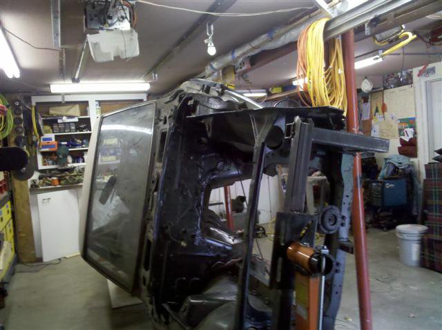 Tested the rotisserie this evening as well. Sometime this week I will be removing the windshield and the rear quarter glass. Sheet metal floor pans will be getting removed as well, they were not done the correct way and one of them was not even primed or painted after it was welded in--lots of rust on it. After that I will get the rest of the wiring harness out of the car and try to get my neighbor to commit to a date on the mediablasting. I've decided to keep the cage in the car, not gonna need to pass any inspections as I have no intentions of roadracing this car. Anybody want to chime in on whether I should just replace the 40 year old brake lines & fuel lines running the length of the tunnel now too? Im thinking it would be a good idea but I've read both opinions on this....