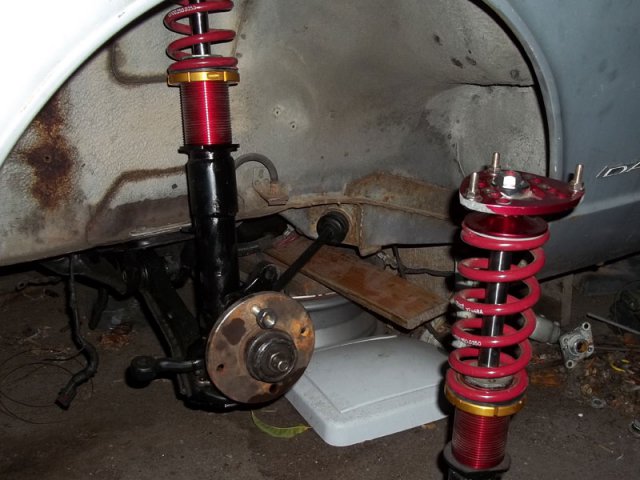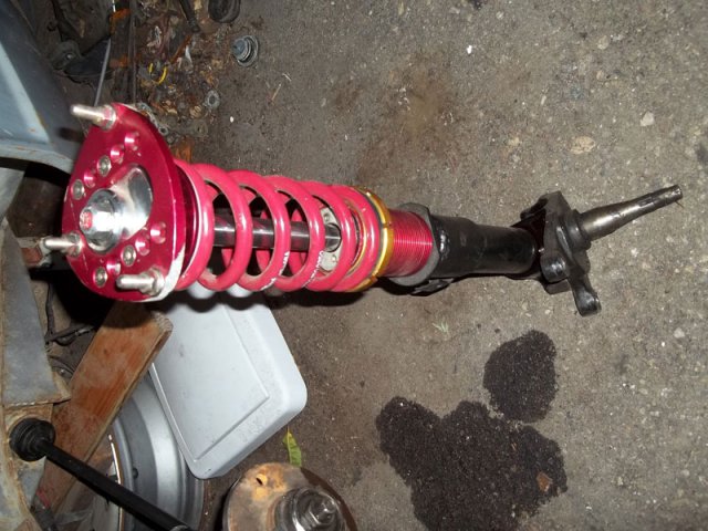 well after a day of assembly and machine work I got the front strut assy's done and tomorrow I will be doing the rears and the brakes. Yahoooooo -