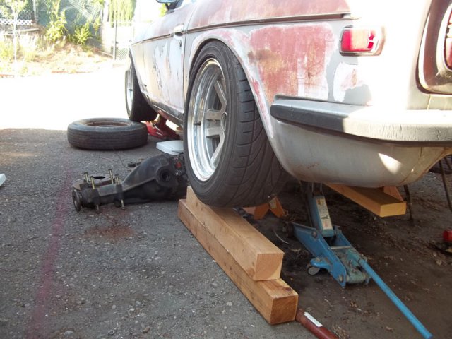 Yeah...I am taking it one step at a time. I have a friend that is a great welder and he is going to do the mounts, some reinforcement, and mods. I will be going with a fuel cell after all and with the spare tire cut out I will have room for the dual mufflers. Also I am still having problems fitting the 8 1/2" X 18" rims and the coilover kit. I have 350's (7") up front and 440's (7) in the rears. So I am thinking of going to a 4" spring the same rating or some 8" 225's up front with 10" 200's rear. -