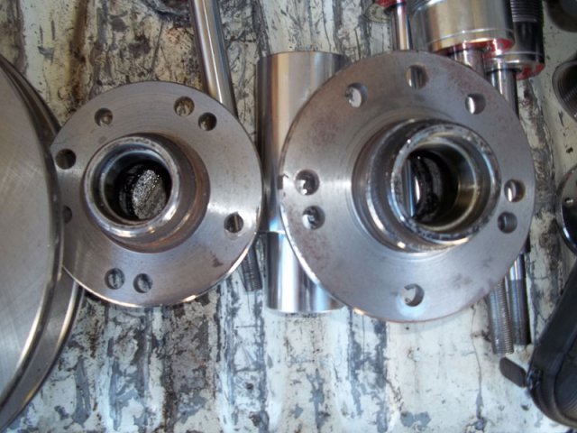 I got some more of my machined parts and will have the car on the ground this weekend...The caliper brackets will be done in (3) weeks (Machinist needs a two week brake). Here are some pictures. -