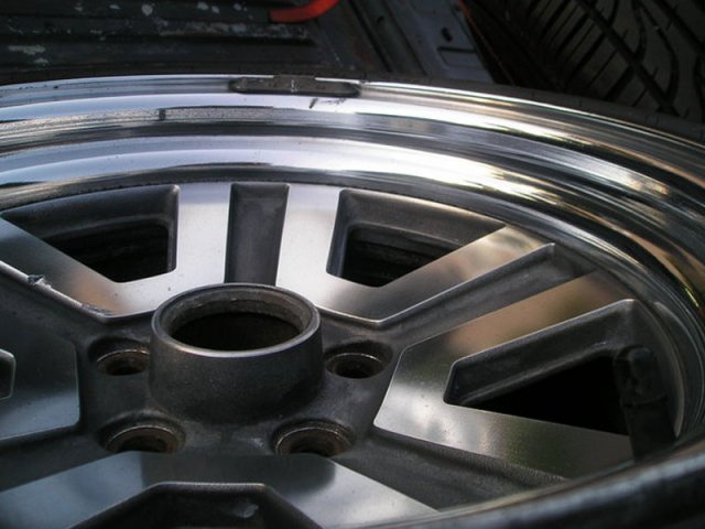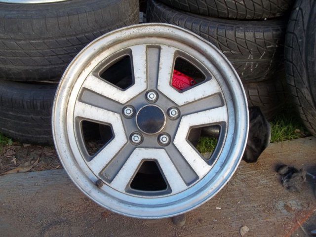 Here's my stub axles, sectioned struts and Starion Wheels. I got my machined stuff back and it was wrong. So here's some pictures. I will have to machine the struts for the camber plates. I will need spacers for the Z32 Calipers. -