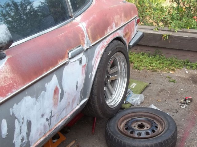 Well I am really close to towing the car to the welder for welding motor mounts, steering mechanism (fixing my welds) and he is going to reinforce the frame rails, strut towers, tunnel, radiator support (lowered for a bigger radiator) install the rollbar, cutout rear hatch floor and rivet or weld in plate for the fuel cell and battery, and duel exhaust...huh huh huh have to catch my breath LOL. I broke down and bought a transmount crossmember from JTR (Jags That Run) $65...I got my rims with tires mounted and well "In theory everything works" but now I am having playing with wheel spacers, adapters, hubs, and disc/caliper combos to fit these 255/50 ZR 16 888 Proxys street legal track tires in the stock but rolled fenders. On another one of my motors 5.4L, (forged pistons, H beam rods, preped forged steel crank, aluminum flywheel) is done with the machine shop so that I can assemble it...Which I finnally built my own stand along kit to run up to and more than my 80lb. injectors and twin Mitsubishi TF07 turbochargers. The limit on one MAF is 750hp which is nice...But running two MAFs will yeald 1,300 hp (with hugh injectors) I would like to restore a classic heavy muscle car (pre 70s) or truck (F100 1953-1956) to put it in. I am also working on building an Aluminum blocked SOHC with PI heads for sale. Also will be putting together a NorthStar V8 with ITB's More fun. -