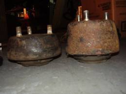 Got my coilovers welded on and turned out a tad lower than i was hoping for, so looking for a pair or even better a set of 4 280z rear insulator mounts. I have a set of 4 240z mounts in good condition i can trade or just buy yours flat out. Let me know your price shipped to SF 94121. Below is the picture of the difference of the 240z vs 280z mounts for reference.