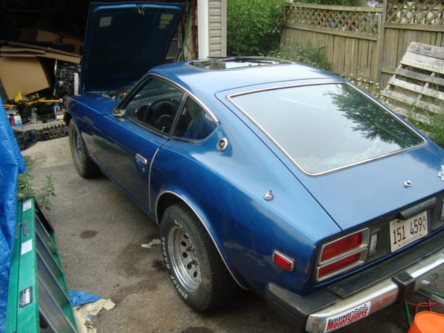 THE car that Chicago240z is talking about...Forsale 1978 280z, used a 1972 240z for parts to make it look like a 240z, hood, front turn signals and valence, rear turn signals and tail light surrounds and used the dash and center console from the 240z. It has 280z door panels and seats, needs carpet kit and weatherstrip kit. Floors and framerails are straight, rear shelf and pan are straight, rocker panels are straight, front fenders are NOS, rustfree new fenders (worth $500 plus alone). There is a hole the size of a golf ball on the drivers side front shock tower, the spots behind the front wheels are soft and both rear quarters need work, I was going to use JDM flares all the way around and if you do it there is less work in the rear quarters to do...There are a matching set of 14" 280zx wheels on it with newer tires, engine is a N42 block and N42 head with dual 3 bolt SU carbs and 74 260z intake manifolds (will give about 10 more HP). Car currently doesn't run...got too cold to finish and don't have a garage to work on it. I'm moving soon and would like to sell it. Will take $1300 for the car with everything but the battery to make it run...have the parts missing from the exterior in the car, they were taken off to prime the exterior...my email is buyaz2@hotmail.com car is in Fox lake, IL