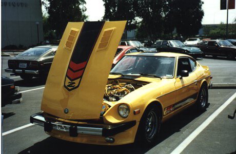 A little bit on racing stripes: They were popularized in part by the Gordon Bennet Cup, Grand Prix, and FIA rules in the early 20th century and came on strong in the 1950s and 1960s. Most of the color schemes and stripes / patterns denoted the country of origin of the car's owner or racing team. The late '60s and early '70s saw sponsorship colors take hold and push out national colors in most racing disciplines. That's why there are so many red Ferraris, Alfas, and Maseratis. Ditto green and yellow Jaguars, Aston Martins, Lotus(Lotii?), and BRMs. Same for silver BMWs, Mercedes, and Porsches(actually, they're supposed to be white, but to reduce weight in the '30s, some cars were left in bare aluminum, and it stuck). U.S. colors at the time were blue over white...which you see on Cunningham C4-Rs, Shelby Cobras, GT40s, Mustang GT 350s and a number of other '60s era U.S. cars. There's a bit of folklore about the direction and placement of stripes and their origin. Tread with caution on this next part. Supposedly an offset stripe would help track workers (especially on a track hosting a race in the LeMans series, with many cars and teams coming from all over the world, in a variety of configurations) locate the driver in event of a rollover. Another benefit of an offset stripe supposedly is that being down the driver's line of sight, it will give them a subconscious reference of the vehicle's orientation on the track, especially in a spinout or when transitioning quickly across the surface. Supposedly Briggs Cunningham was the first to apply a longitudinal stripe to a racing vehicle, with the Cunningham C2 in 1951. Japanese national colors are an off-white with a red 'meatball' and black numbers. I wasn't about to slap a giant hinomaru on my Z, so I took a little license and did this instead: I stopped the stripe short on the hatch, since I'll get a spoiler on there eventually and I didn't want a stripe sticking out underneath it, and the stripe doesn't go all the way down the front, either. Purely my personal opinion, but the Z doesn't lend itself to full length stripes the way other cars do. Datsun had a factory longitudinal stripe on the Z in the form of the ZZZap! package: In the end, it's your car and the colors & style of stripe should suit your taste.