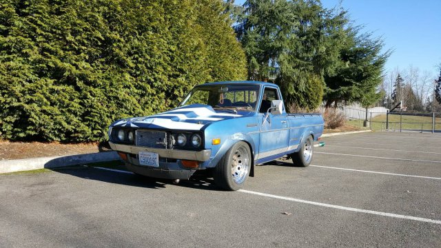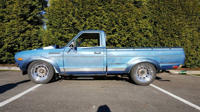 No big updates on the car currently since I'm away from it. But, for a while now, I've been looking for a small truck to carry extra things in, whether it's needing to take a couch home (I have wooden outdoor couches in my living room because I haven't had time/a truck to bring home comfortable indoor couches... granted they fit in with the fireplace and all hardwood floor) or just to be able to get rid of green waste around the house. I was looking at a lot of 22RE engine Toyota 4x4 trucks, but they're always pricey even at over 200k miles, so I started looking at older 620 trucks. After all, I don't need much, just something I can carry stuff in, plus a 620 was the first car I learned to drive in. Last night I made a $2k offer on 307 chevy swapped 620, and it's likely I'll be picking it up this weekend. Can any of you more knowledgeable people maybe point out areas of concern based on the pictures? I drove it a bit last night and it drives well and brakes hard. It doesn't look pretty, definitely a rat rod, but it would work well for what I need. Opinions? -