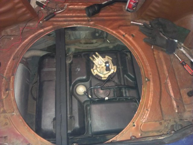 Used some test leads yesterday to check the Racetronix pump that came in the Camaro tank. It's working beautifully, the guy that last did the job did a terrible splicing job. I'm redoing wiring later today and seeing if the stock connectors on the pump assy aren't busted as well. If not, I removed the evap sensor and ran the wires through the hole. I'll do some more custom stuff to make that work with some quick disconnect cables. It's satisfying knowing that pump is working though, shouldn't have any pump issues for a long time even with an engine swap. Will update post with my final wiring when I get to it later tonight. Update: Pins on the pump assembly were busted or at least bent enough that the original connection wasn't making proper contact. Fed the wires through the hole where the evap pressure sensor used to be (since I can't use it anyway), and respliced them to some quick disconnect ends. Cut the hoses down to a more appropriate size too now that I know I'm using the internal pump and put the interior trim back over the filler. Looks much more complete than before, just need to make a cover for the spare wheel hole. With that, the fuel delivery is pretty much done. Will be wiring the sending unit next before I put the cover on. Won't be accurate until down the road when I get new gauges, but this will work for now. -