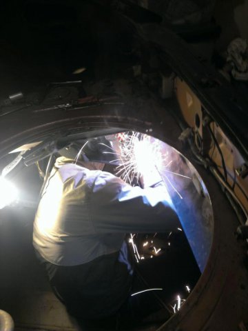 Haven't been posting much lately. Been trying to apply for full time jobs and I was in Oregon for a few days just recently checking out a job offer. Finally made a cover for the tank. Made from aluminum my dad got at the scrapyard. It's bolted around the sides so I can access anything I want on the tank or the rear end down the road. Welded the fancy little things you see around the circle so I could bolt the plate down. It works well enough for now Dad cutting the cover and a mockup Fancy schtuff Gives you an idea of placement pre-welded Aaaand, painted and bolted on (mostly, you get the idea) It's not perfect but it'll do for now. -