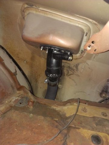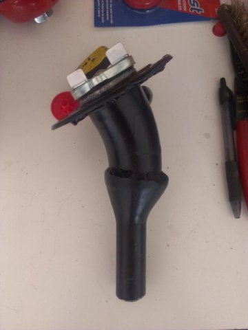 Finally got a semi-permanent solution for the filler neck going. Update in next post once it's installed and I have some pictures. It involves the top half of a late model filler neck, the rim from my original neck, and the lower half of the Camaro filler to narrow it down into the hose I'm using. Gotta cut off a couple inches on this hose and adjust the rim so it screws on properly. The upper portion will need to be cleaned up later for appearance sake and in case of spills but it'll work quite well for now. -