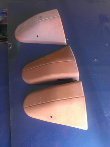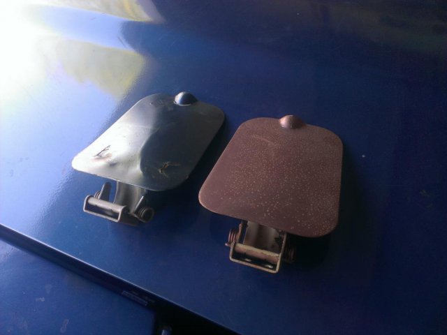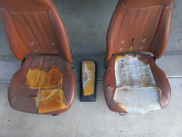 Semi-big update: My dad was on a trip to visit family in Mexico and decided to take the seats with him since re-upholstery is significantly cheaper there. Today my seats were finished and he picked them up. They're looking pretty sweet if I do say so myself. Not much has happened to the car itself, the last several weeks I've kinda considered and "acquisition phase." Lots of new parts purchased including some stuff from the junkyard: Seats reupholstered Old New Passenger headlight bucket at a steal from the junkyard (Old on was bent out of shape) Taillights sans burned plastic (Picture doesn't do the new ones justice) Both plastic seat-belt strut tower covers Top is the only one that was in when I bought the car... ... And it wasn't even the original color Fuel door (Lousy pic, but it shows how bad the original one was better) Louvered hood (also a steal, only $40. A few small dents should be no huge issue) I've also committed myself to do SOMETHING about my filler neck situation. Won't update on that until I actually finish it though, no empty promises to strangers Dad should be back in about a week and after that I'll be getting a start on making this thing move and getting the biggest rust issues resolved before my dad helps me sandblast the whole thing. -